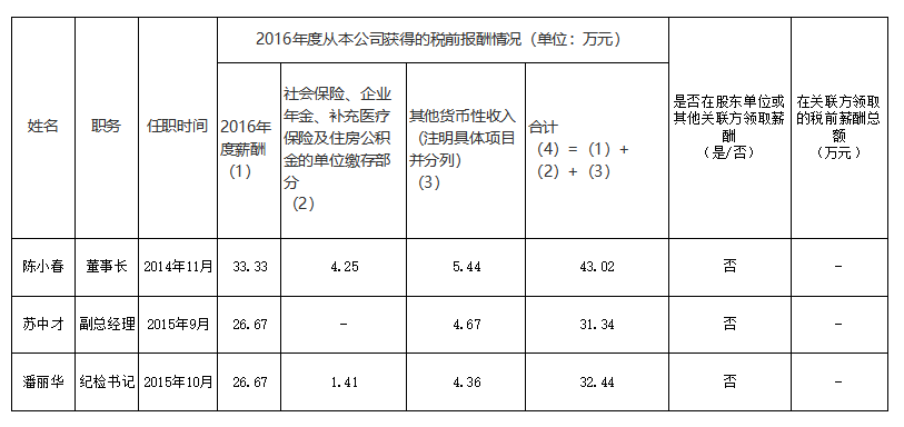 福建三明機(jī)場(chǎng)有限公司董事長(zhǎng)、監(jiān)事、高級(jí)管理人員2016年度薪酬信息披露